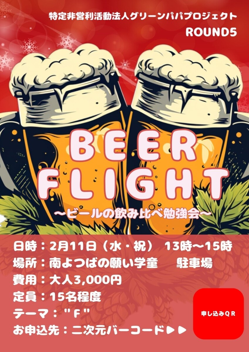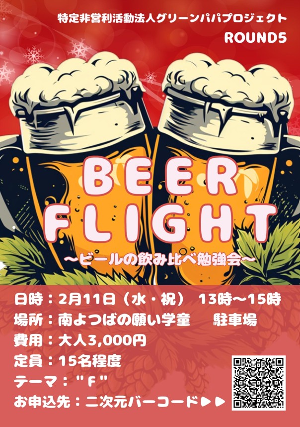 2/11(水・祝)にNPO法人グリーンパパプロジェクト主催のビールの飲み比べ会「BEER FLIGHT」第5弾を開催します!
