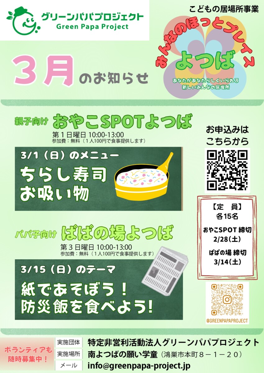 NPO法人グリーンパパプロジェクトが運営する「みんなのほっとプレイスよつば」。
